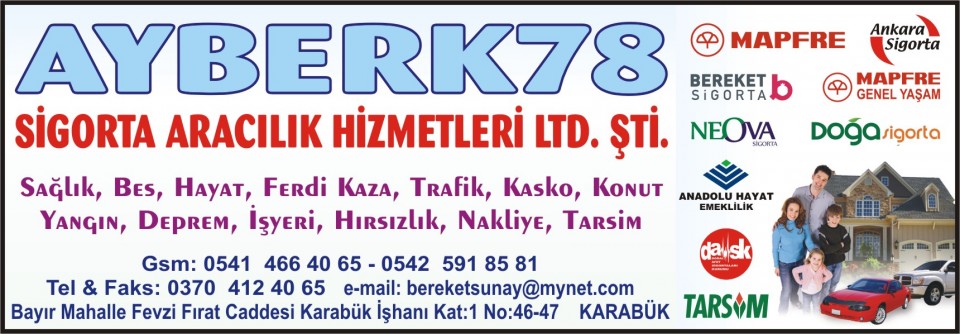 AYBERK 78 SİGORTA Ayrıntılı Bilgi İçin Tıklayınız