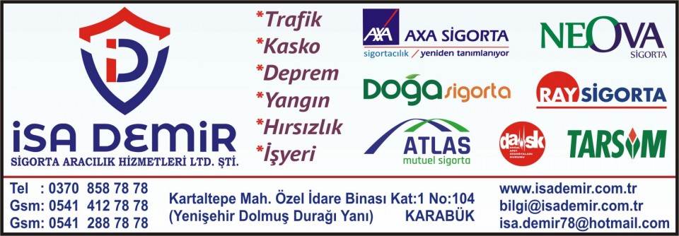 | Karabük Yıldırım Sigorta | 0555 | 889 87 78 |