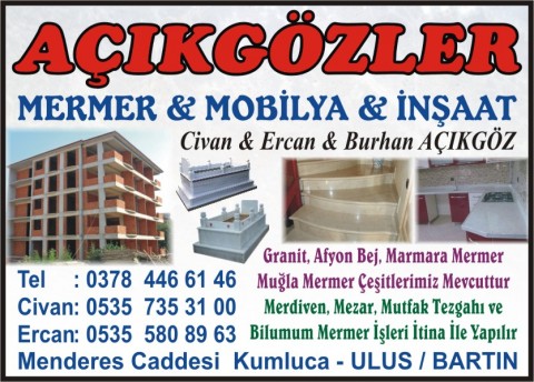 | Açıkgözler Mermer & İnşaat | 0378 | 446 61 46 |