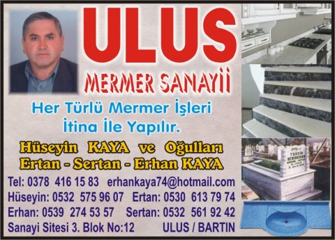 | Ulus Mermer Sanayi | 0378 | 416 15 83 |
